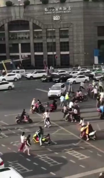 事故发生后,网上流传着关于该案的现场视频。一辆白色越野车在原地多次转圈后,从顺城大街逆向往盐市口方向冲去,路口等待的多辆电瓶车被撞倒,最终撞向一辆白色汽车后停止。随即,路口执勤交警和公安将肇事车驾驶员控制。